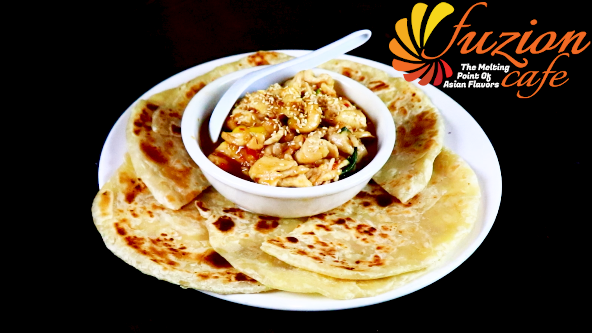 Chicken or tofu caramelized wish roasted nuts, mango & basil served with buttery & flaky pastry flat bread.