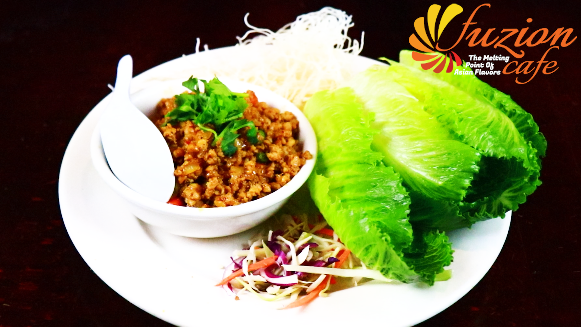 Lean minced chicken or tofu & vegetables sautéed in a savory hoisin sauce, served with romaine lettuce & crispy noodles.
